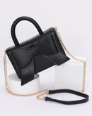 Presenting the Faux Leather Ribbon Top Handle Bag, an elegant and sophisticated accessory that combines contemporary style with timeless charm. Crafted from high-quality polyurethane and accented with mixed metal hardware, this bag features a chic ribbon top handle design, perfect for adding a touch of luxury to any outfit. Whether you're attending a formal event or enjoying a day out, this bag is designed to complement your style with ease.