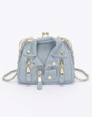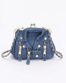 - Faux Denim Leather Jacket Style Crossbody Bag