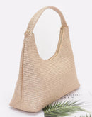 Metallic Faux Straw Hobo Bag