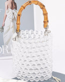 - Bamboo Handle Transparent Bead Chic Tote Bag