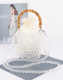 Bamboo Handle Transparent Bead Chic Tote Bag