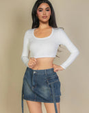 - Solid Rib Knit Square Neck Long Sleeve Top