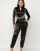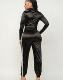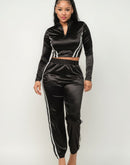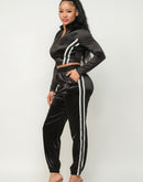 - Front Zip Up Stripes Detail Jacket And Pants Set