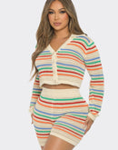 Product Description: This striped knit set delivers effortless coordination with a polished twist. Featuring a long sleeve collared top and matching shorts, the set blends comfort with style in a...