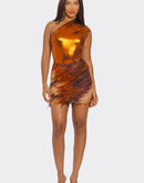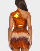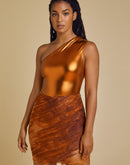 - Metallic One Shoulder Bodysuit & Mini Skirt Set