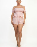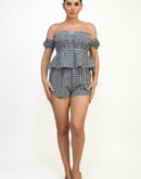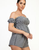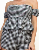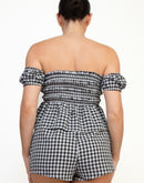 - Off-shoulder Smock Gingham Top & Mini Short Sets