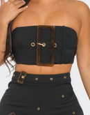 - Front Eyelet Buckle Belt Top And Skirt Set