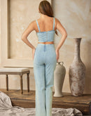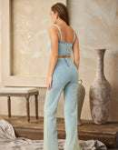 Add a touch of shine to your summer wardrobe with this chain strap detail two-piece set, designed for stylish comfort and standout appeal. Featuring an oval ring chain strap and jewel buckle accents, this set blends edgy hardware with a feminine silhouette. The cropped top and coordinating bottom create a sleek, warm-weather look that's perfect for daytime outings or evening plans. Made from a soft, stretch-blend fabric, both pieces offer a flattering fit with smooth back zippers for ease and polish.