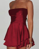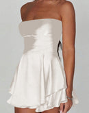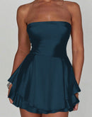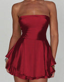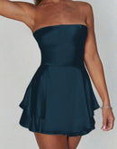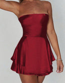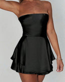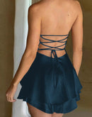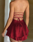 - Solid Backless Lace Up Tube Fit Mini Dress