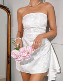 - Solid Off Shoulder Strapless Satin Short Dress