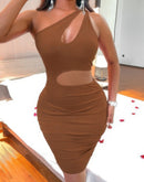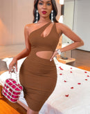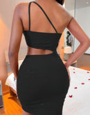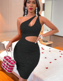 - One Shoulder Sleeveless Cutout Bodycon Dress