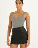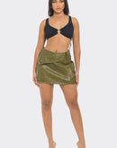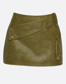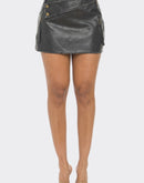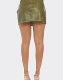 Command attention with the Faux Leather Strap Mini Skirt, a bold fusion of edgy detail and sleek design. Crafted from high-shine PU leather, this mini skirt features striking cross-strap accents and a belt keyhole detail that adds a rebellious twist. Functional front zipper pockets and a small back pocket bring both style and practicality. The structured silhouette is designed to sit close to the body, creating a confident, modern fit. With its subtle stretch and standout finishes, this skirt is perfect for nightlife, concerts, or fashion-forward streetwear.