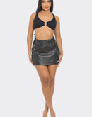 Product Description: Command attention with the Faux Leather Strap Mini Skirt, a bold fusion of edgy detail and sleek design. Crafted from high-shine PU leather, this mini skirt features striking...