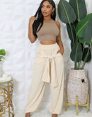 Introducing our High-Waisted Stretch Pants, a staple piece designed for both comfort and style. These pants feature a high-waisted design with an elastic waistband, practical pockets, and cuffed bottoms for a polished look.