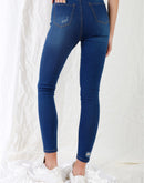 Why Choose Dark Blue High-waisted With Rips Skinny Denim Jeans?