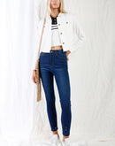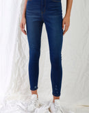 Experience the perfect blend of style and comfort with our Dark Blue High-waisted With Rips Skinny Denim Jeans. The trendy design and high-quality fabric make them a staple piece for any casual occasion.