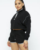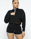 Add the Sporty Crop Top with Zipper Details and High-Waist Shorts in black to your cart now and elevate your active wardrobe with style and comfort!