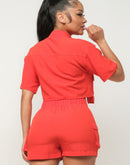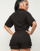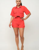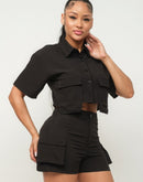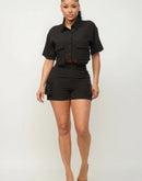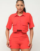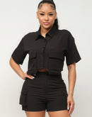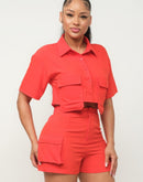 Front Button Down Side Pockets Top And Shorts Set