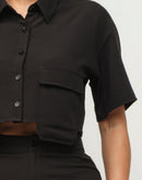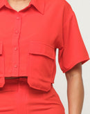 4. Design: The Front Button Down Side Pockets Top and Shorts Set features a collared short sleeve crop top with functional front buttons and side pockets, paired with elastic waistband shorts with front button inside zipper and side flap pockets, adding a modern twist to your ensemble.