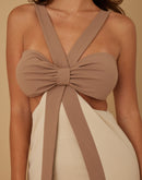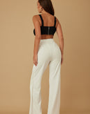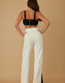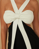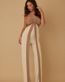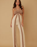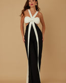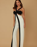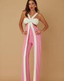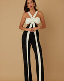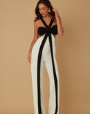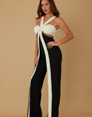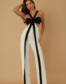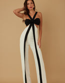 Step into standout style with this X ribbon open jumpsuit, a bold yet refined piece designed to make an entrance. Featuring a unique crisscross ribbon detail across the open front, this jumpsuit offers a daring silhouette with a sophisticated edge. The structured fit elongates the frame, while the open accents and tailored lines create a balance of femininity and power. Perfect for evenings out or elevated occasions, this piece is a confident choice for those who love fashion with impact. Just add heels and minimal accessories to complete the look.