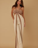 Product Description: Step into standout style with this X ribbon open jumpsuit, a bold yet refined piece designed to make an entrance. Featuring a unique crisscross ribbon detail across the...