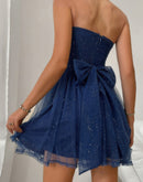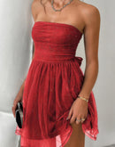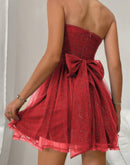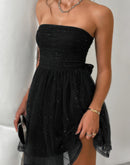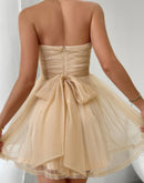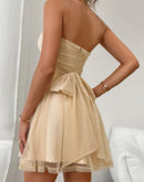 Off Shoulder Ruched Knot Zipper Pleated Short Dress