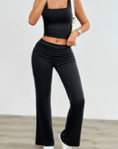 Two Pieces Square Neck Ruched Sleeveless Sets