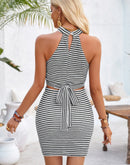 Two Pieces Halter Neck Striped Tube And Skirt Sets