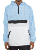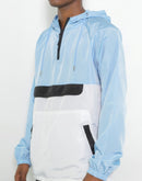 Enhance your outdoor wardrobe with our Color Block Anorak Jacket Pullover Windbreaker in Lt. Blue/White. Add it to your cart now and enjoy comfort, style, and protection!