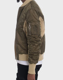 Elevate your outerwear collection with our Two Tone Color Block Bomber Jacket for Men, designed for a sleek, modern look combined with functionality. Crafted with 100% nylon, this jacket offers durability and lightweight comfort, making it perfect for transitional weather. The bold two-tone design adds a contemporary edge, while the tactical zippered pocket pouch on the back enhances its utility and style.