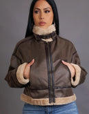 Stay warm and effortlessly chic with our “Aviator Luxe” Faux Shearling Jacket, a timeless blend of cozy comfort and bold sophistication. Crafted from 100% high-quality polyester, this jacket mimics the luxurious feel of shearling while offering an animal-friendly alternative.