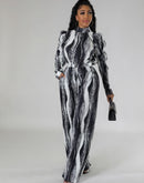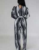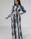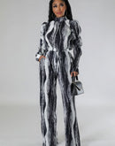 Elevate your wardrobe with our Non-Stretch Two-Piece Set in Black/White, a sophisticated ensemble that exudes timeless elegance. The set features a mock neck, long-sleeved top with a neck button closure and high-waisted pants with wide legs, pockets, and a button zipper closure. Crafted with precision and attention to detail, this set offers a polished and refined look.