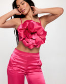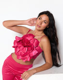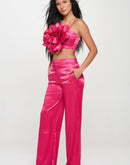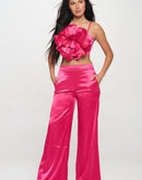 This set offers an effortlessly chic look with its unique flower-shaped design and wide-leg pants. The adjustable straps and high-rise fit create a flattering silhouette, making this an ideal outfit for a variety of occasions.
