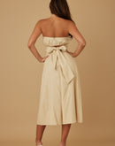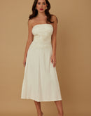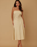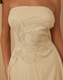 Breeze into elegance with this flower lining linen pattern strapless dress, designed to capture the essence of effortless charm. Featuring a beautifully textured linen-look fabric, the strapless silhouette is both feminine and refined. A subtle floral lining adds a hidden touch of detail, offering a romantic surprise with every movement. The fitted bodice and softly flared skirt create a flattering shape that’s perfect for warm-weather events or garden parties. Light, breathable, and easy to style, this dress is a seasonal favorite with timeless appeal.