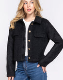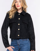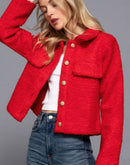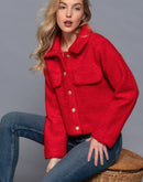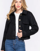 Stay warm and stylish with our Long Sleeve Teddy Fleece Short Jacket, a cozy addition to your wardrobe that’s perfect for chilly days. This button-down jacket features soft teddy fleece for ultimate comfort and a trendy look.