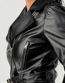 Design: Long sleeves, wide collar, buckle belt, and zipper details create a stylish and functional look