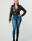 Make a striking statement with our PU Leather Jacket, a bold piece that effortlessly combines style and edge. Designed with a wide collar and eye-catching details, this jacket is perfect for adding a touch of sophistication to any outfit.
