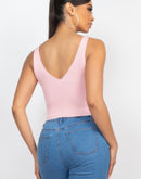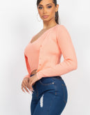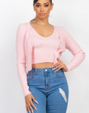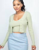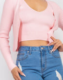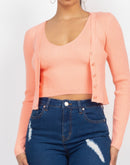 • Two-piece set: ribbed crop tank top and matching cardigan