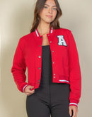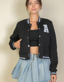 Introducing the EZwear Letter Patched Crop Varsity Jacket, a stylish and comfortable addition to your wardrobe. Made with very soft, stretchy fabric, this jacket combines sporty charm with a modern twist. Featuring long sleeves, a zipper closure, and an eye-catching A letter logo graphic, this jacket adds a bold, varsity-inspired touch to any outfit. Perfect for layering during the cooler months, this jacket is ideal for fall and winter wear.