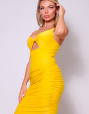 - All Over Ruching Detail: Not just visually appealing but also adds a touch of texture to the dress.