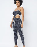 3. Design: The Black color, mesh print crop top with a plastic chain halter neck, and matching leggings create a bold and edgy ensemble.