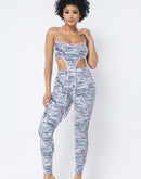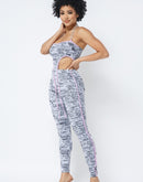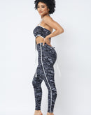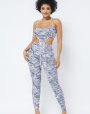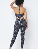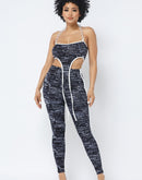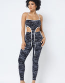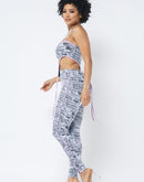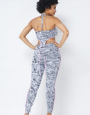 Mesh Print Crop Top With Plastic Chain Halter Neck With Matching Leggings
