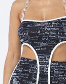 3. "The plastic chain halter neck is such a unique detail, and the mesh print is so cool. I receive compliments every time I wear this set!" - Olivia S.