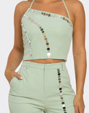 Product Description: Refine your wardrobe with the Christine Pants Set, a sophisticated straight-leg pants set with elegant silver details. This sleek ensemble is designed to elevate your look effortlessly, blending...