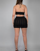 Introducing our Lurex Two-Piece Set in Black, a glamorous and chic ensemble designed to make you shine. Crafted from knitted lurex fabric, this set features a shimmering glitter finish that adds a touch of elegance and sparkle to your look. The halter top pairs perfectly with the matching skirt, creating a coordinated and stunning outfit that is perfect for evening wear or special occasions.