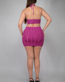 With its shimmering fabric, flattering design, and glamorous finish, this two-piece set is the ultimate choice for anyone looking to make a bold fashion statement. The halter top and matching skirt offer a sophisticated yet fun look that is perfect for any event.