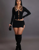Luxe Faux Fur Collar: A plush faux fur accent adds an elegant, winter-ready touch to the cropped cardigan.