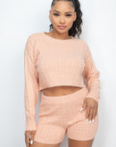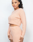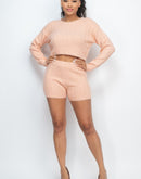 Embrace effortless style and comfort with our Ribbed Crop Top and Shorts Set. This chic set combines a cozy ribbed-knit sweater with a matching pair of shorts, perfect for lounging or casual outings.