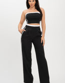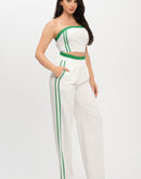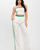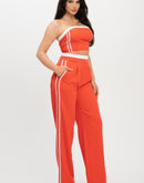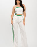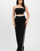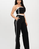 Stripe Tapping Contrast Elastic Band Toppants Set
