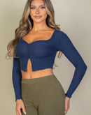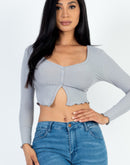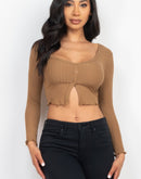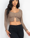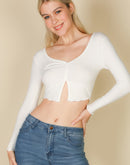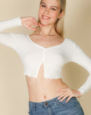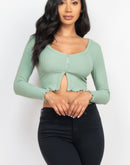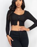 Ribbed Split Long Sleeve Button-Front Top Elevate your casual wardrobe with this stylish ribbed split long sleeve top, designed with a flattering button-front detail for a touch of sophistication. Crafted...